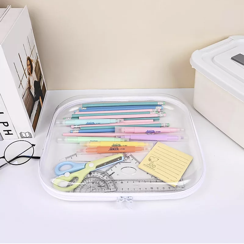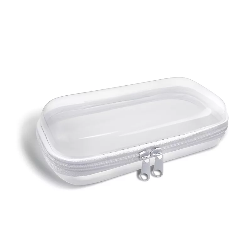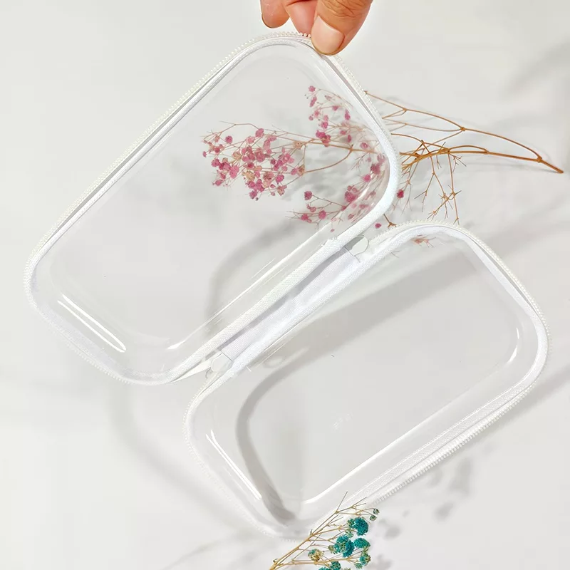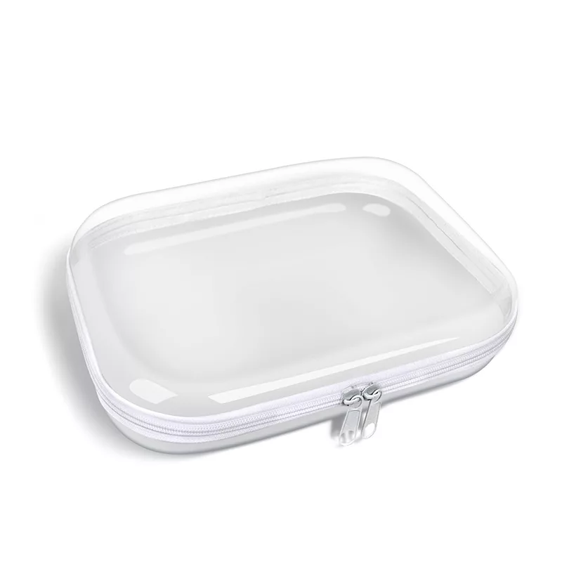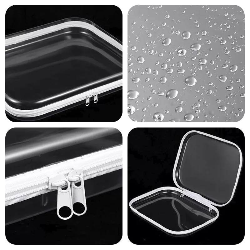 Această mică trusă păstrează totul organizat și sigur în geanta mea. Îmi place designul transparent!