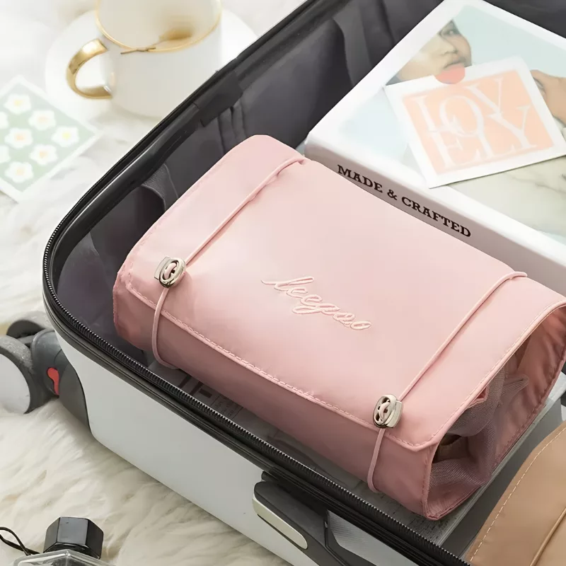 Această geantă pliabilă pentru produse cosmetice îți permite să sortezi produsele de frumusețe mai eficient. Designul compact se potrivește ușor în bagajele de mână sau rucsacuri, economisind spațiu. Este ideal pentru escapade rapide, vacanțe lungi și utilizare zilnică. Fermoarele durabile și materialul impermeabil protejează obiectele de scurgeri și scurgeri.