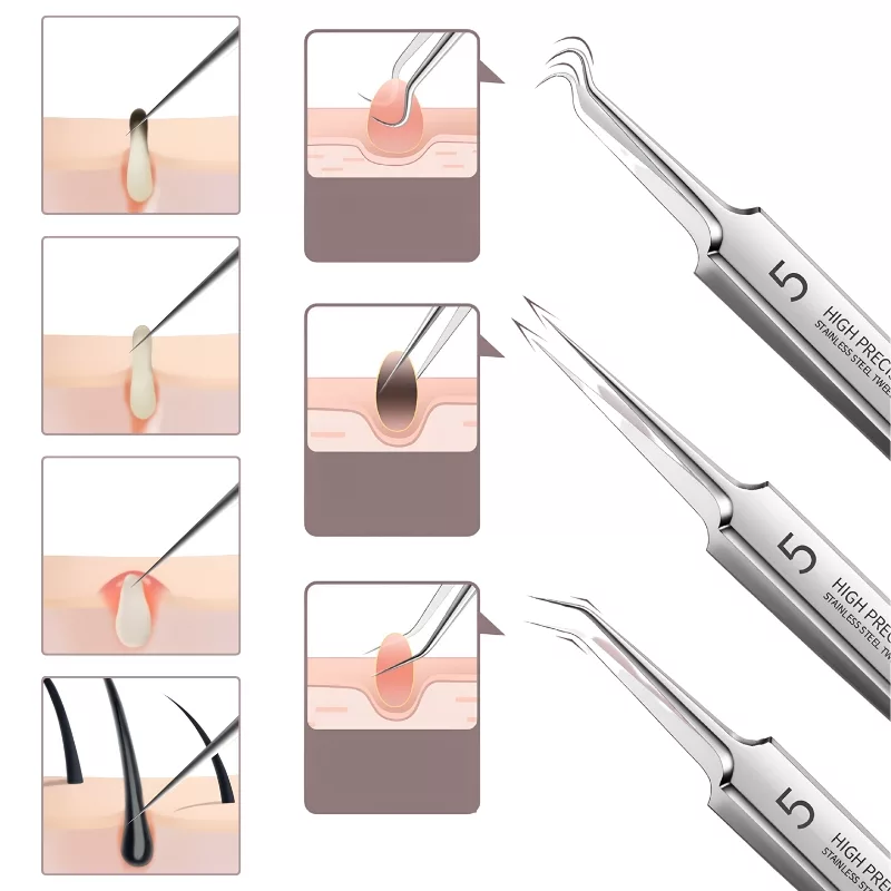 Pensetele noastre pentru puncte negre ajung adânc pentru a curăța impuritățile și a îmbunătăți tenul pielii. Ele ajută la prevenirea aparițiilor viitoare prin menținerea porilor liberi de resturi. Acest kit este un adaos inteligent la orice rutină de îngrijire a pielii.