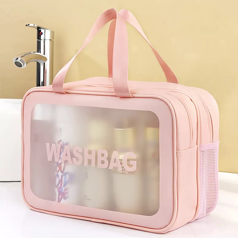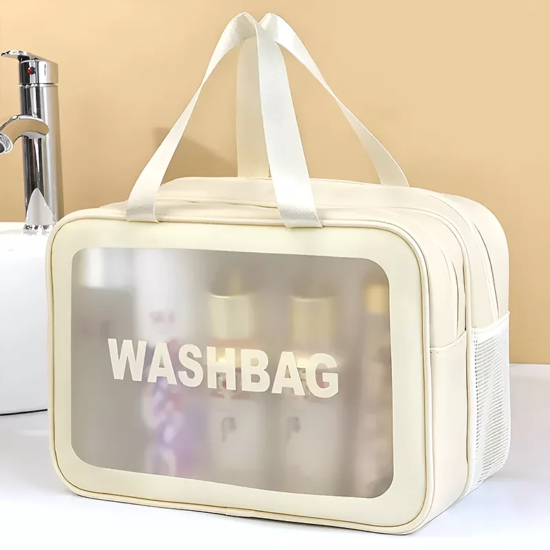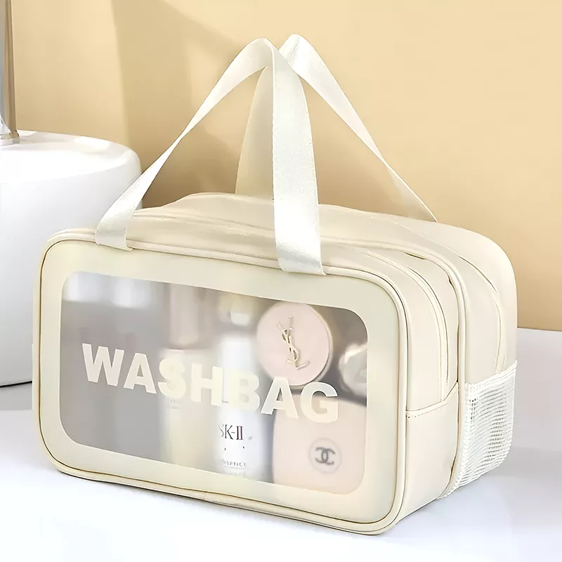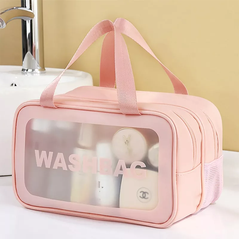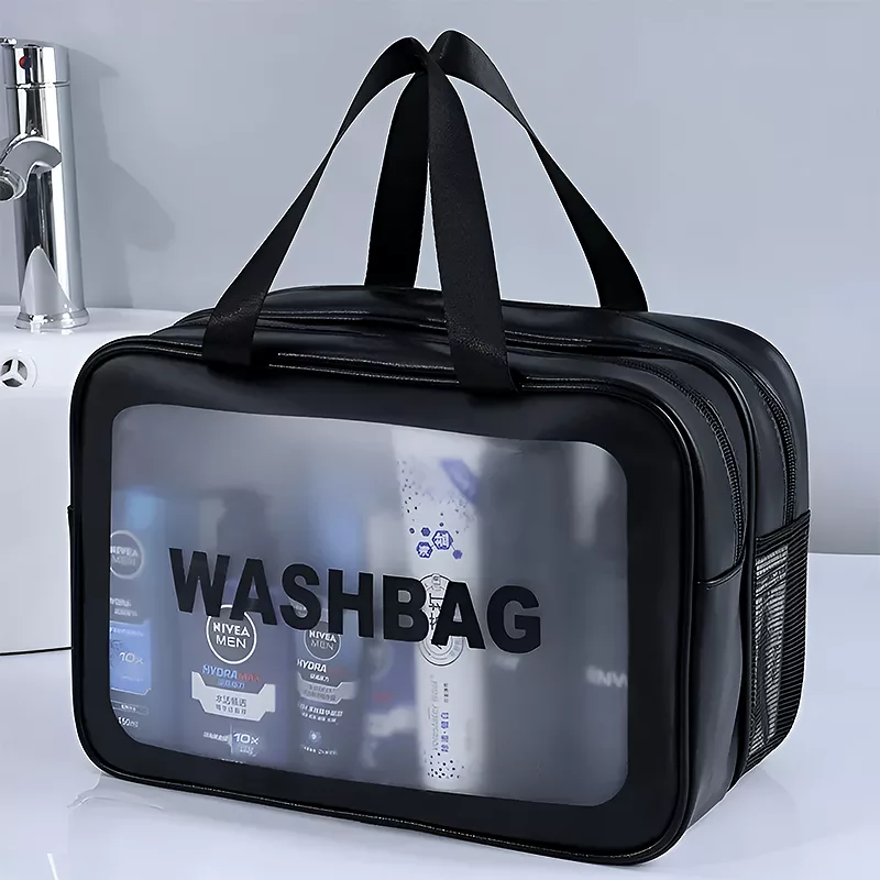 Geantă de toaletă pentru machiaj și cosmetice cu carcasă solidă transparentă