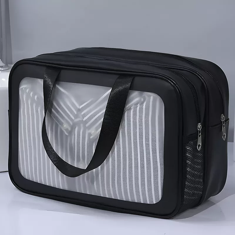 Această trusă cosmetică transparentă te ajută să împachetezi mai inteligent și mai rapid. Compactă, dar spațioasă, ține toate produsele tale de machiaj într-un singur loc. Este excelentă pentru călătorii, navetă sau utilizare zilnică. Spune adio articolelor uitate și vărsărilor murdare din geanta ta.